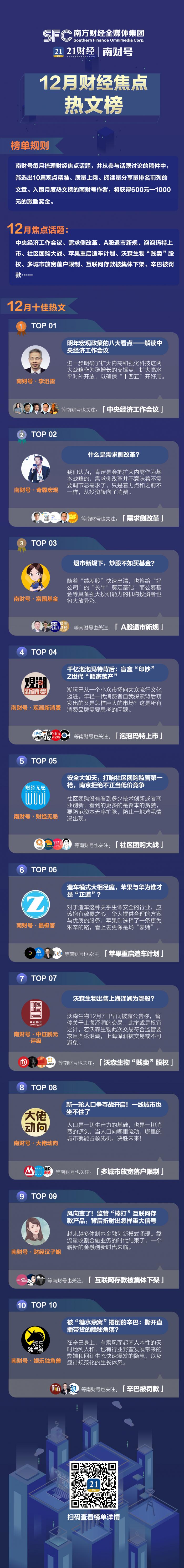 最精彩的观点,最精准的分析,尽在南财号12月财经焦点热文榜!
