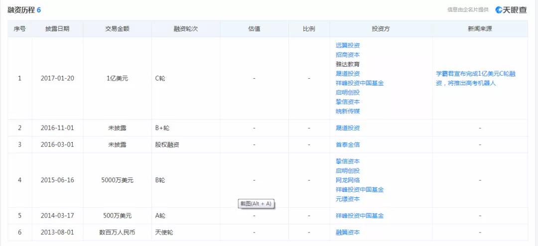 据天眼查APP显示,猿辅导融资历程11轮,作业帮经历融资历程8轮,学霸君经历融资历程6轮。一级资本市场在2017年之后就不再为学霸君输血。