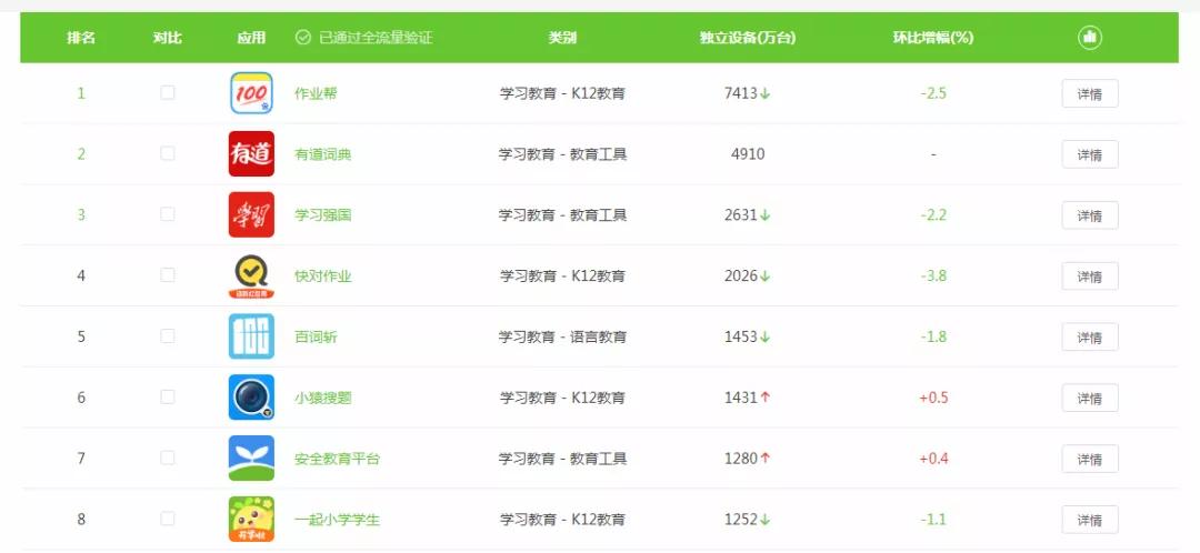 根据艾瑞数据显示,2020年11月份,月度独立设备数排名前几的教育类软件,大多是教育工具类应用,或者应用内部包含拍照搜题、词典、批改作业一类的工具类功能。