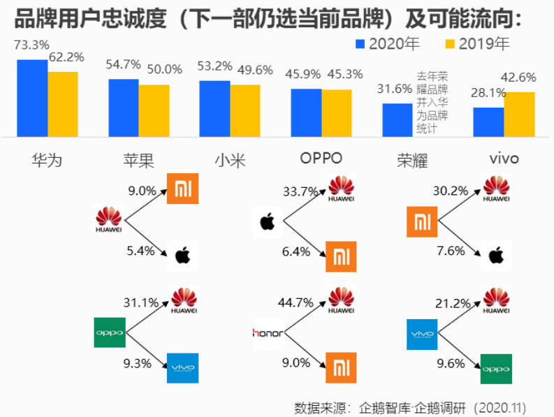 由此可见,华为让出的高端旗舰市场份额,除了少数用户会向更高一档的苹果三星外流,大部分市场都会成为小米、OPPO、vivo嘴边的肥肉。