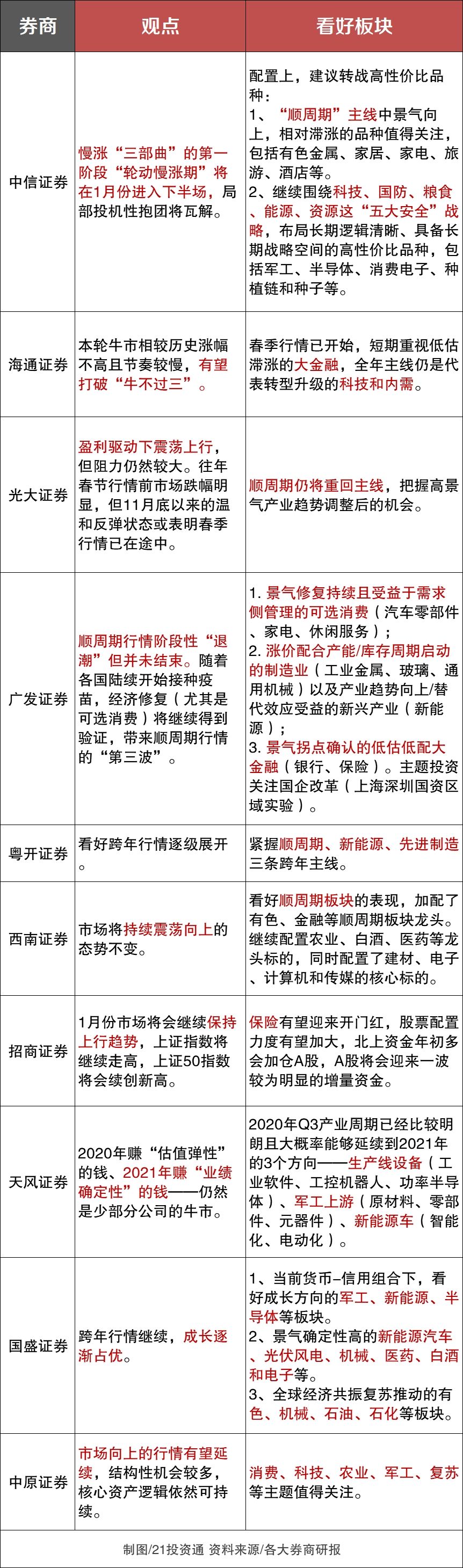 2021年1月行情即将开启,有哪些重磅事件将影响市场,各大券商如何看待?