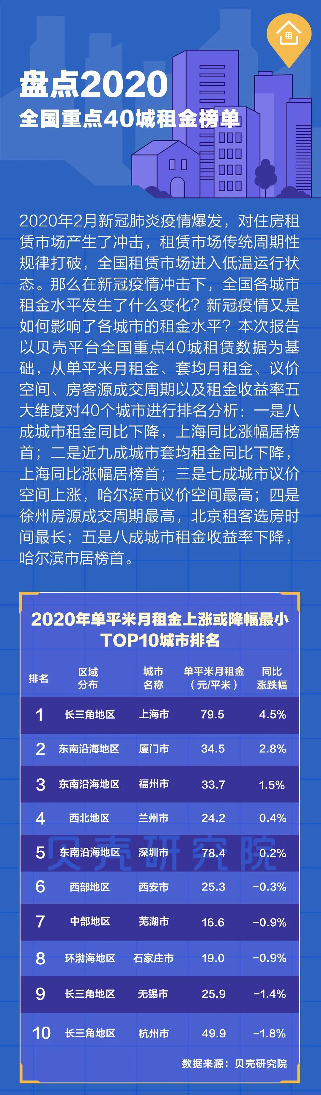 重点40城的选取标准是以各城市2019年的租赁GMV为主导因素,综合考虑贝壳平台的样本量、区域的分布情况。重点40城覆盖了全国东北、西北、西部、中部、东南沿海、环渤海及长三角地区等七大区域。其中,一线城市:北京、上海、广州、深圳;二线城市:南京、天津、杭州、青岛、成都、大连、苏州、济南、合肥、武汉、长沙、烟台、厦门、东莞、沈阳、重庆、郑州、石家庄、无锡、西安、南通、徐州、福州、长春、宁波、佛山、哈尔滨、南昌;三线城市:廊坊、惠州、兰州、中山、贵阳、呼和浩特、芜湖、太原
