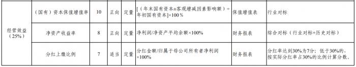 经营效益包括(国有)资本保值增值率、净资产收益率、分红上缴比例 3项二级指标,权重分别为10%、8%、7%,主要反映商业银行资本增值状况和经营效益水平。