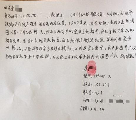 (3)该内容旋即被网友截图传播,并被误认为是拼多多官方回复。对此,拼多多严正声明:李某某并非拼多多员工,也未获得任何授权,该行为系非合规授权使用拼多多官方账户发表个人言论,不代表拼多多官方态度。事发后,拼多多已经暂停与该供应商合作,修改密码回收账户,并将进一步追究相关人员责任。