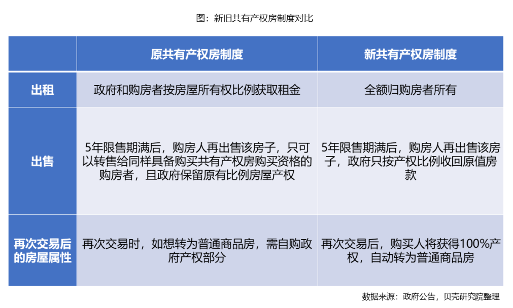 3)房屋属性:《公告》规定,再次交易后,购买人将获得100%产权,自动转为普通商品房,减少购房者担忧。而此前的共有产权房如果转为普通商品房,需首先自购政府产权部分。这极大的降低了购房者对于共有产权房再次出售时,政策、价格不清晰等问题的担忧。