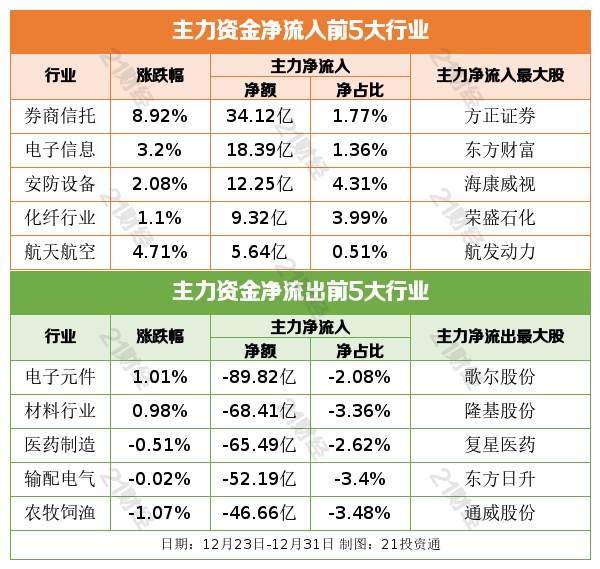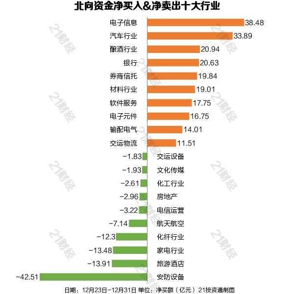 北向资金净买入电子信息居首,净买入金额达38.48亿元;净卖出安防设备最多,净卖出金额达42.51亿元。