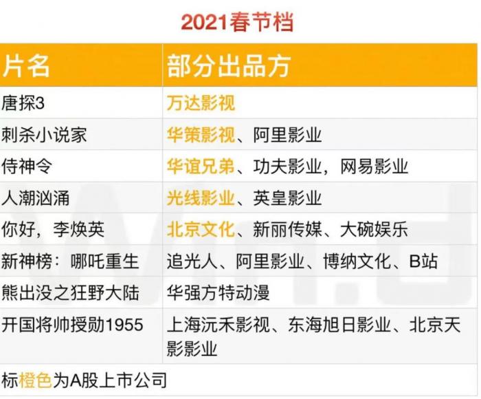 3、元旦档期的带动下,今年的春节档很大可能出现大爆发。已有8部影片宣布定档大年初一, 这8部影片包括:《唐人街探案3》《熊出没·狂野大陆》《新神榜:哪吒重生》《刺杀小说家》《侍神令》《人潮汹涌》《你好,李焕英》《开国将帅授勋1955》。预计在贺岁档和春节档共同推动下,一季度电影市场修复明显。