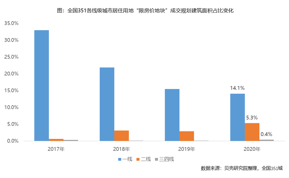 从成交结构来看,2020年二线城市及深圳限房价地块(含共有产权房及安居型住房)成交规划建筑面积占比达到近3年来最高值,限竞房项目预计2021年后在二线城市新房市场呈现井喷状态。另外,部分强二线城在调控政策中再次强调加强限房价地块的入市,预计未来二线城市限竞房地块仍将持续供应,占比或将持续提升。限竞房产品正在从一线城市逐渐向二三线城市推广,未来以稳房价为目的的限竞房项目将成为市场重要的产品类型。