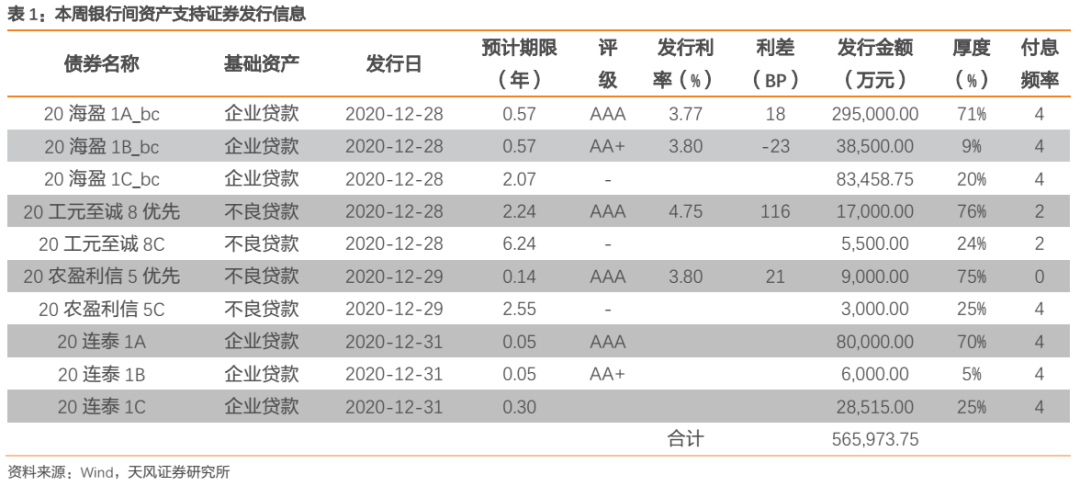 下周银行间市场有4期信贷资产支持证券和2期资产支持票据公开发行,总规模357.57亿元。