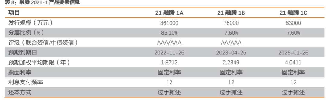 基础资产:本期资产支持证券的资产池涉及187,678名借款人向发起机构借用的187,678笔贷款,合同总金额1420763.6万元。入池所有“抵押贷款”皆为个人客户购车之目的。