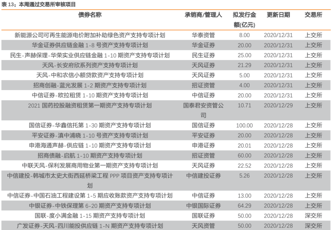 根据上交所、深交所公告,本周共有19期资产支持专项计划通过交易所审核,3期在深交所,16期在上交所,合计通过审核的ABS拟发行金额为539.08亿元。