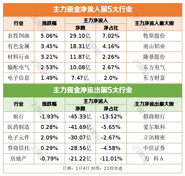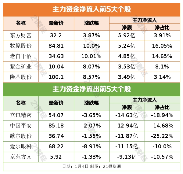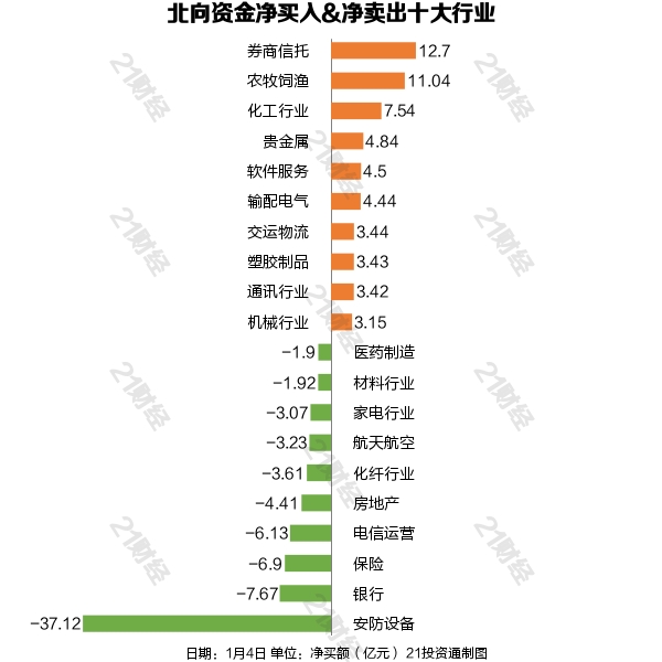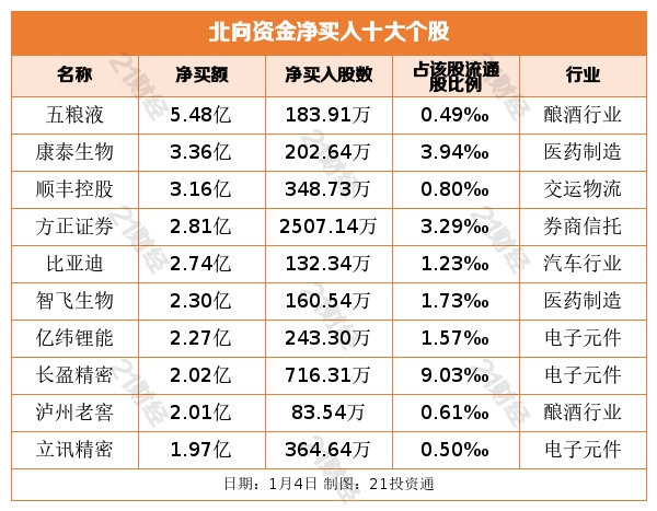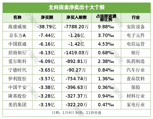 1月4日,北向资金净卖出5.42亿元,其中沪股通净卖出13.95亿元,深股通净买入8.53亿元。