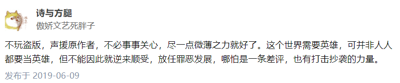 在这方面,正版市场却总乐于用创新的方式给予用户正面的引导和积极的影响。如今,在内容产业中,大家对版权的意识愈发强烈,在游戏、动漫、影视等内容领域,都能看见用户在积极地抵制盗版,对抄袭行为嗤之以鼻。这种变化是可喜的,是对原创者、创新者们最大的支持。