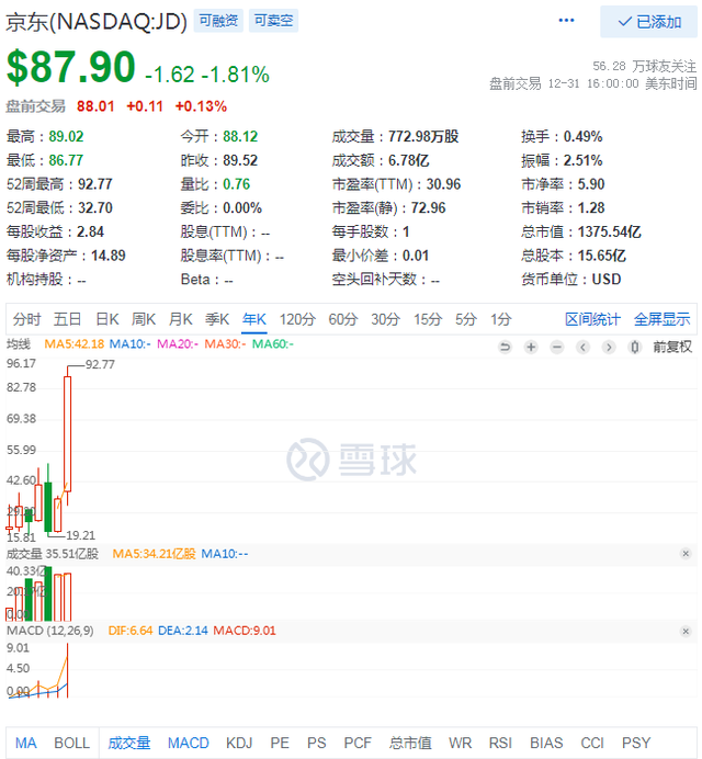 现在的京东已经不再是当年只卖商品的平台,在互联网行业摸爬滚打多年的它业务版图也愈发丰富。虽说离阿里、腾讯的生态差距还不小,但也能看到京东已经在物流、健康、金融等领域都有所布局,这些被给予厚望的业务未来也将担起提升京东市值的重担。