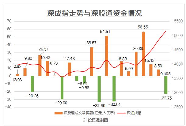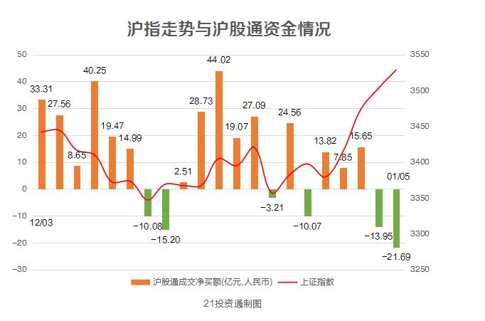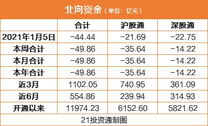 今日,净卖出44.44亿元,其中沪股通净卖出21.69亿元,深股通净买入22.75亿元。
