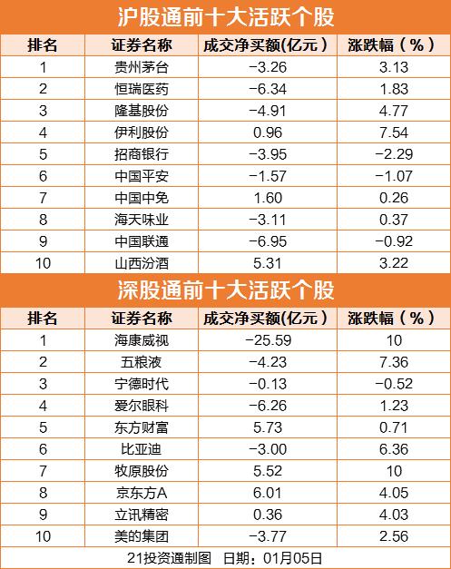 个股方面,北向资金净卖出海康威视(002415.SZ)25.59亿,中国联通(600050.SH)净卖出6.95亿,恒瑞医药(600276.SH)净卖出6.34亿,爱尔眼科(300015.SZ)净卖出6.26亿。