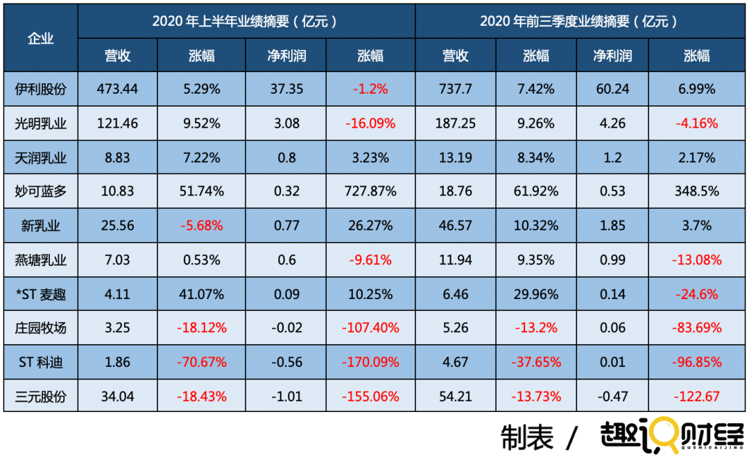 显然,2020上半年,各家乳企均受到了不同程度的影响,影响最大的当属于以三元股份为首的区域性企业。