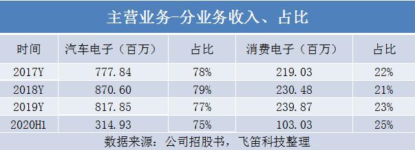 从收入结构来看,公司的主营业务收入主要有汽车电子产品和消费电子产品两大模块。其中汽车电子的收入占比在75%左右,消费电子的收入占比在25%左右。