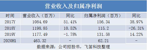 先来看公司整体的营收和净利润情况,据招股书最新数据,2020年上半年,公司实现营收4.63亿元,归属净利润为6221万元。从往年的数据来看,公司2019年实现营收11.77亿元,同比下降1.78%,2017年以来首次出现负增长;公司2019年的归属净利润为1.32亿元,同比增长14.22%,较2018年-26.31%的增速明显提升,公司的净利润变动趋势与营收不一致。