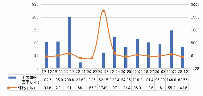 图5: 2019年10月-2020年10月宁波市商品住宅(不含保障性住房)供应走势