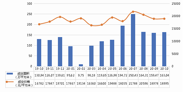 图6: 2019年10月-2020年10月宁波市商品住宅(不含保障性住房)成交量价走势