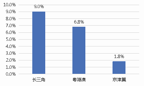 庞大的人口数量伴随着旺盛的住房需求。疫情后长三角市场率先恢复,市场规模持续领先增长。长三角地区受益于疫情后供需两端支持性政策落地更早,市场规模恢复幅度也较为突出。2020年1-11月,长三角地区住宅成交面积同比增长9%,领跑全国。粤港澳大湾区商品住宅成交面积同比增长6.8%,而京津冀仅有1.8%(数据来源:微观楼市)。根据中国房地产指数系统百城价格指数调查数据显示,2020年1-8月,长三角地区的新房价格涨幅为3.85%,位居三大主要城市群的首位。在百城范围内,新房价格上涨的89个城市和二手房价格上涨的53个城市中,分别有27个和22个城市均来自于长三角城市群。此外,在2020年1-8月50家代表房企拿地的分布情况中,长三角地区的热度最高,占比高达26.1%(数据来源:中指研究院)。