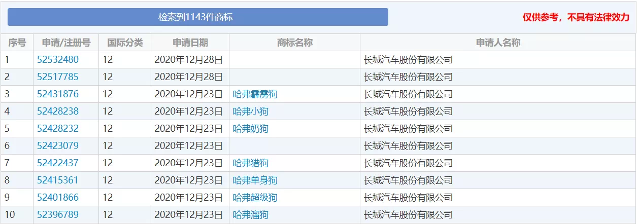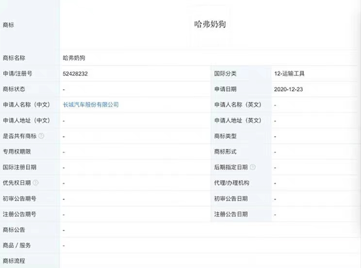 看到这些名称,大家的肝颤了吗?事实上,哈弗申请这么多商标也不排除将它们应用到哈弗车型的可能,在此之前,谁都不相信哈弗将“大狗”、“初恋”、“黑猫”、“好猫”等名称放在量产车使用,而现在大家不也欣然接受了吗?