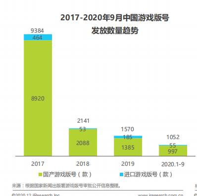 除了买量成本提高以外,版号收紧的号角声也促使着精品游戏的脱颖而出。奇偶派数据统计显示,2020年获发游戏版号的游戏数量为1316款,2019年为1571款,2018年高达2087款,2017年则是惊人的9369款,即使2016年也有4050款。随着游戏版号数量的减少,游戏用户和收入加速向头部游戏企业以及精品游戏集中。