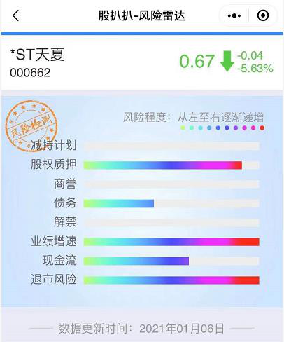 从股扒扒程序中,我们可以看到*ST天夏存在的一些风险。