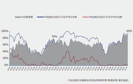 风格切换,内部分化:沿着经济复苏的轮动线索,八月以来顺周期低估值板块轮番实现上涨。上半年受益流动性宽松的高成长高久期个股出现了剧烈分化,下半年以来随着市场风格的变化,越来越多的行业估值水平进入到了合理范围区间。