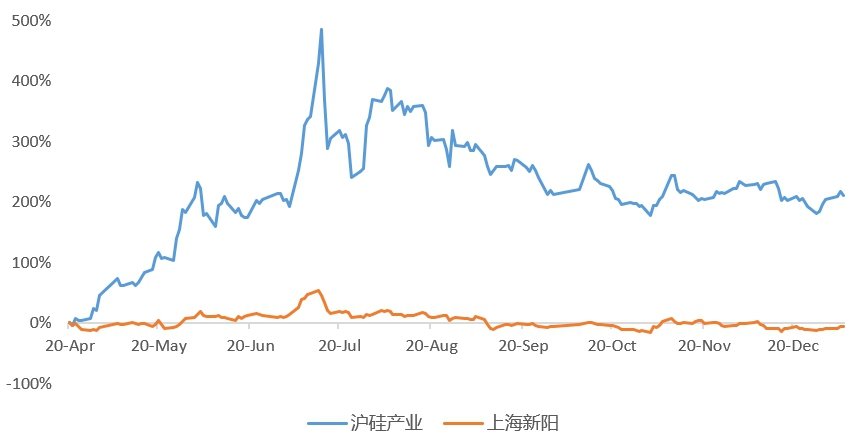 沪硅产业上市以来,上海新阳和沪硅产业的股价基本走出了相同的曲线。