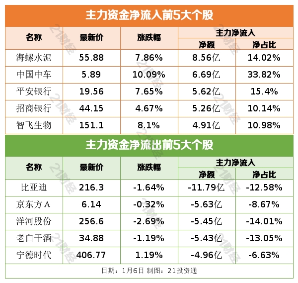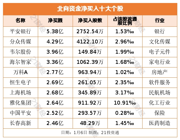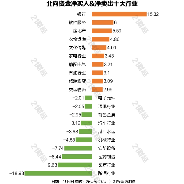 1月6日,北向资金净买入2.36亿元,其中沪股通净买入18.69亿元,深股通净卖出16.33亿元。
