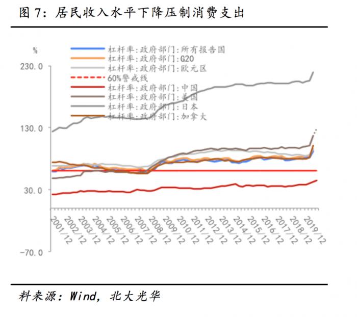 首先,在全球杠杆率普遍呈快速上升之势情况下,我国杠杆率问题并不突出,不需过快压低杠杆率,只需保持杠杆率基本稳定。欧元区、G20国家早在疫情前就已超出警戒线20个百分点以上。据BIS统计,二季度全球政府部门杠杆率较一季度上升10.1个百分点,其中美国、加拿大等地涨幅超15%,而中国涨幅仅为2.3%(图7)。据我们测算,全球三季度政府部门杠杆率将进一步攀升,美国将较去年年末上升至少28个百分点。我国三季度政府部门杠杆率为44.7%,较去年年末上升6.4个百分点,距欧盟的60%警戒线仍有一定空间,可见我国在杠杆率问题上的压力远不及其他国家。因此,我们认为在今年宏观经济持续改善的情况下,不必急于降杠杆。