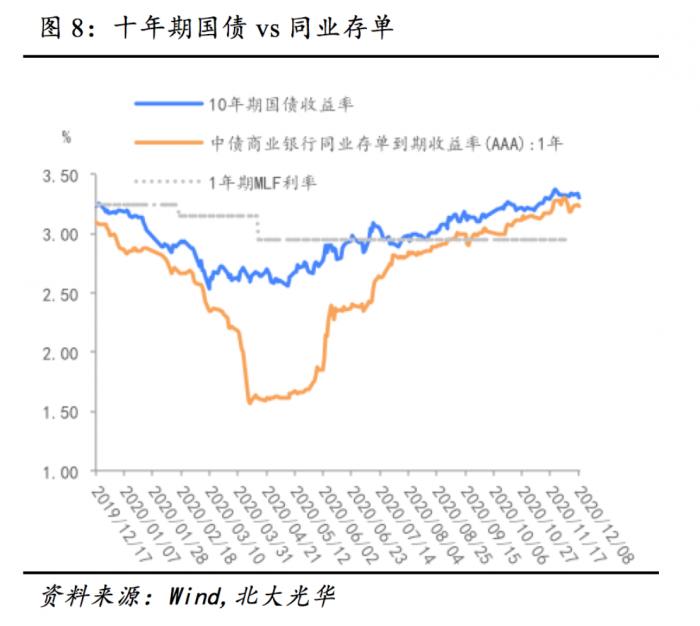 再次,我们认为应更加关注长端利率对信用债市场的影响,并强化MLF的中枢作用。由于永煤、华晨等地方国企违约,近期同业存单以及十年国债利率持续上升,说明永煤事件已对总体流动性造成了影响,波及到利率债市场(图8)。在流动性分层、信用利差走阔的同时,一级市场信用债取消发行的规模快速上升。现阶段若过早收紧货币政策,将加大企业的融资难度,增大企业债务违约可能。