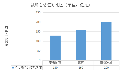 再者,从融资力度对比,蜜雪冰城与喜茶融资后估值更高。据观测,奈雪的茶近日获得1亿美元C轮融资后,累计完成了5轮融资,投后估值近130亿元;喜茶在2020年3月获得的由高瓴资本和Coatue联合领投的第4轮融资后,投后估值超过160亿元;蜜雪冰城则在去年被传言将获得由高瓴资本、美团旗下龙珠资本领投的新一轮融资,投后估值约200亿元。