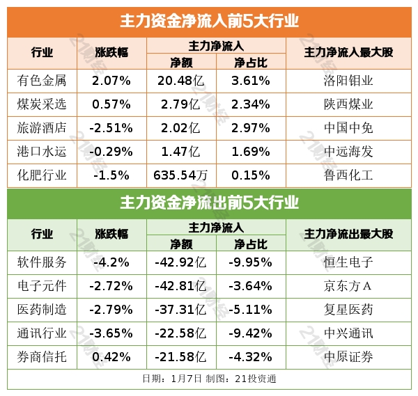 7日,沪指与创业板指日K线六连阳。两市成交额连续四日突破万亿元,合计成交12165亿元,行业板块多数走低,有色、券商、煤炭等板块逆势拉升。