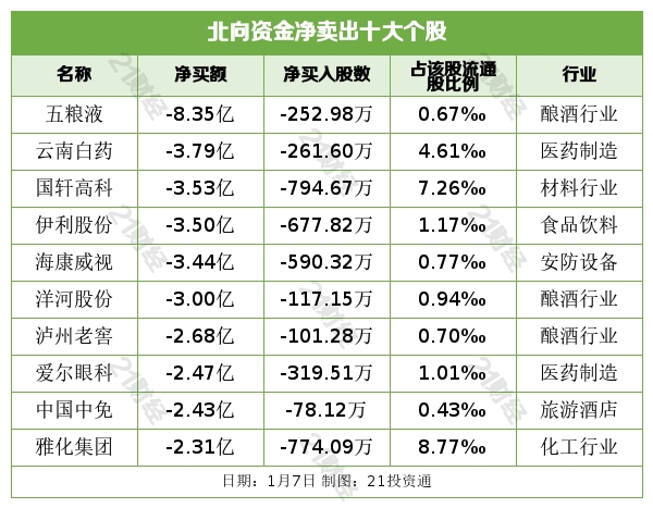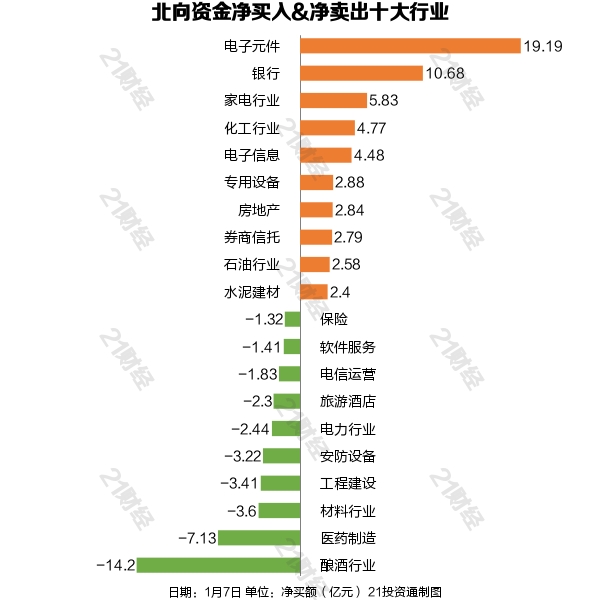 1月6日,北向资金净买入2.36亿元,其中沪股通净买入18.69亿元,深股通净卖出16.33亿元。