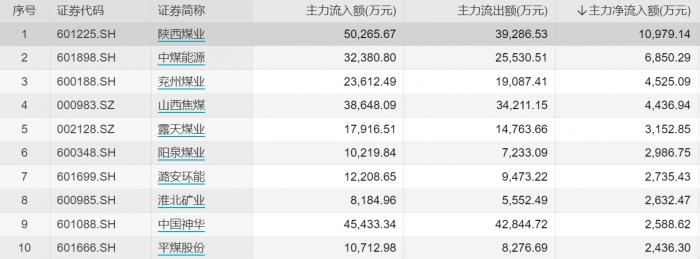 据wind数据统计,今日有13只个股获主力净流入超千万,其中陕西煤业净流入额为1.09亿元居首