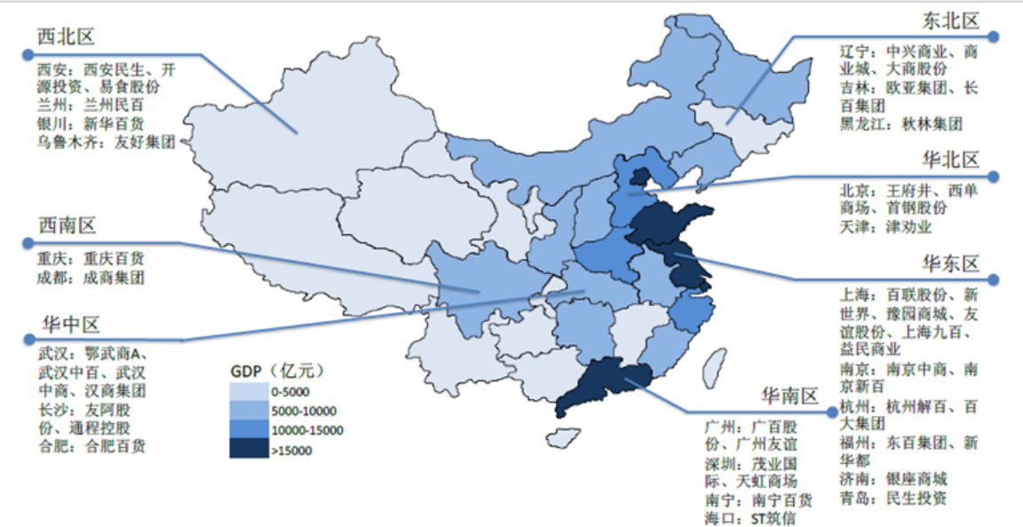 中国区域与区域之间的不平衡发展导致了商圈与商圈之间的竞争在区域上有着较为明显的垄断和割据特色。整体而言,区域百货龙头的分布则带有强烈的地域性。从另一个角度看,传统零售表现出的地域特征也是其欠成熟的标志之一。中国百货行业集中度有所上升,但在国际上相比仍然处于较低水准。