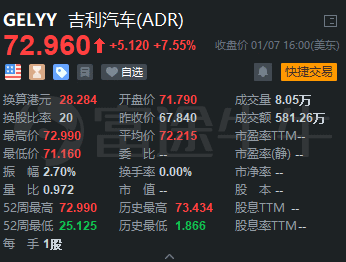 百度或将携手吉利造车,吉利汽车ADR涨近8%创史高