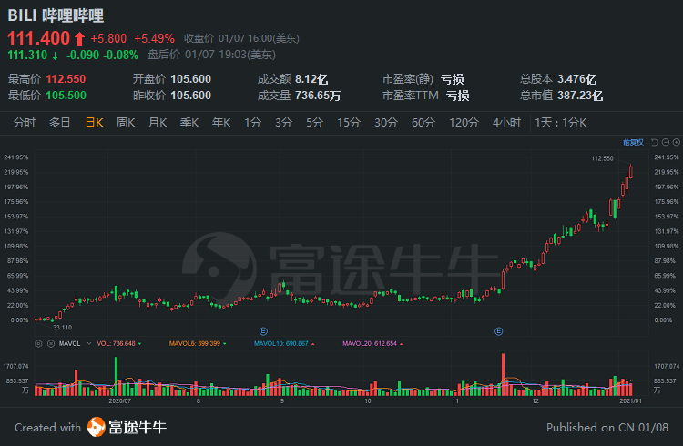 哔哩哔哩涨5.5%,连涨四日并再创新高