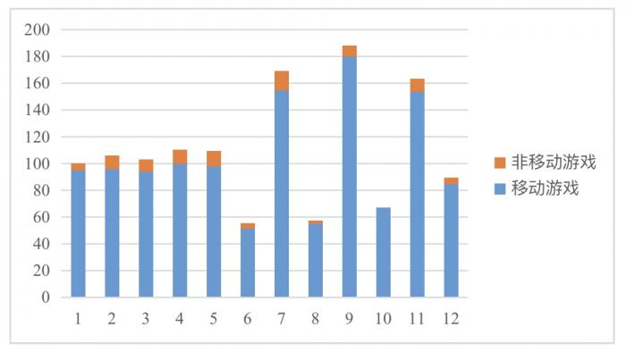 国产游戏方面,1316款版号分22次下发,每月平均过审110款,比去年月均减少约21款。其中移动游戏(含移动游戏和移动-休闲益智游戏)占据过审版号的绝大多数,达到1231款,其中移动游戏共664款,占总数的50.5%;移动-休闲益智共567款,占比43.1%。另外,PC客户端游戏,过审58款,占比4.4%。6款页游过审,占比0.5%。18款主机游戏获得版号,占比1.4%。