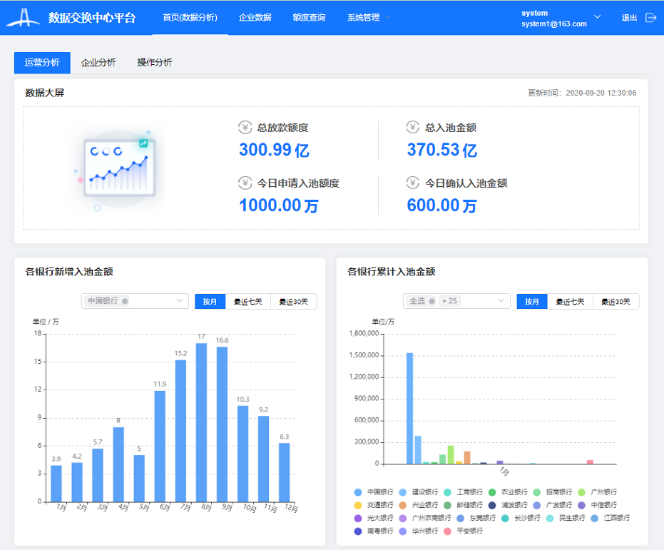 资金池数据交互中心有三大亮点。一是数据及时性。这个交互中心实现两个托管中心实时的入池统计数据,市科技局、两个托管中心、合作银行随时都可以上该系统查询相关的数据,掌握资金池的第一手资料,把握最新的动态;二是参与方数据有效性。资金池数据交互中心的数据统计包括管理方、银行方及企业方,对于企业方统计的营收、需求等情况,可以有效把握资金池企业的整体情况,发掘企业更多的需求,进一步提供深度的服务。银行方的数据体现各家合作银行的授信及放款情况,能对各家合作银行的资金池业务情况实现有效的统计,作为绩效考核的依据之一;三是数字化平台的重要一环。资金池数据交互中心是大湾区中心打造的科技金融智慧大脑——标准化一站式科技创新数字化平台其中一环。平台全面融合了科技企业微诊断、政策推送、贷款融资、品牌活动、成果转化、上市服务、专业服务、人才场地等核心场景及要素对接服务,通过大数据技术对要素资源进行标签化存储,并利用AI算法对要素供给方和资金池企业需求方进行智能化匹配,从而实现更加精准、高效的创新服务,赋能资金池企业成长。