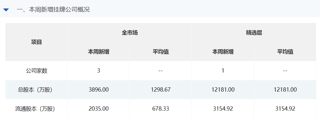 根据全国股转网站披露,2021年第一个交易周(1月4日-1月8日)新三板有3家新增企业,其中精选层新增1家。