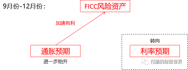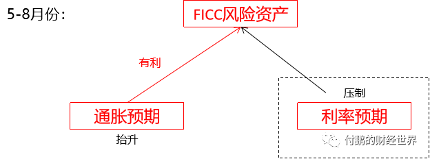 上面陈述的这三个阶段其实在这幅图中是比较清晰的反应了,当然对于风险资产最有利的组合就是通胀预期加速但是名义利率却被按在地板上摩擦,其实也就是实际利率大幅度下降的时候对于所有的风险资产都是有利,当然最大的有利就是既要通胀起,又没有利率升的风险;