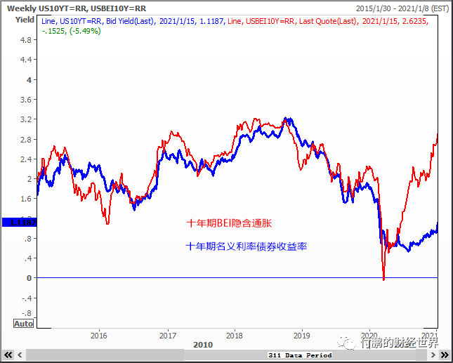 随着美国大选的尘埃落定,以及美国参众两院的都掌握在民主党手上,虽然后续民主党在政策的制定和执行上可能还有一些反复,比如说100天内可能还有一些重新的评估,但是市场的通胀预期已经出现进一步快速抬升,市场对于拜登政府可能执行的较高规模的财政刺激等等都有了一个比较乐观的预估。