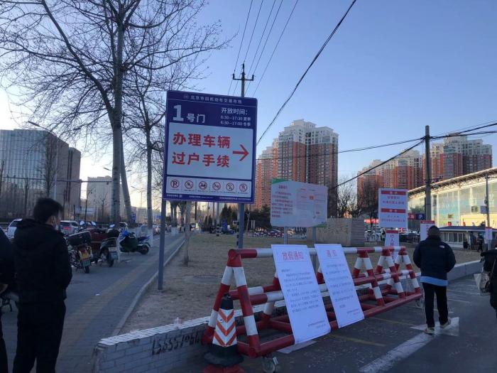在他身后,一张写有“由于市场车辆过户交易系统升级,北京市旧车市场将于2020年12月30日17:30关闭车辆过户交易系统,31日起暂停办理车辆过户业务,2021年1月4日起恢复办理车辆过户业务”的通知板竖在路边,已鲜有人注目。