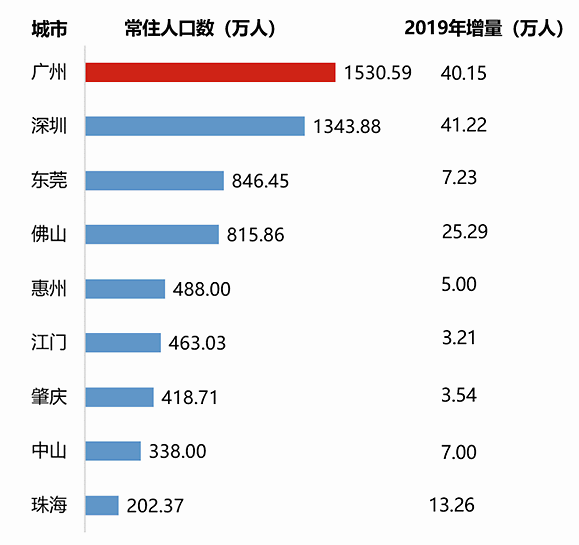 在低出生率的当下,人口红利成为许多经济学家关注的焦点。一个地区的人口迁入更能反映一座城市的发展活力与未来潜力。根据广东省统计局发布数据显示,2019年末,广东全省常住人口11521.00万人,比上年末增加175万人。其中,广州常住人口数与增量在粤港澳大湾区排名第一,常住人口达到1530.59万人,与2018年年末相比增量40.15万人,增幅2.7%,有更多符合条件的人愿意把家定居在广州(数据来源:南方经济智库)。