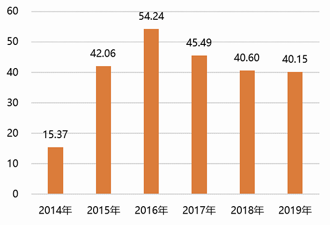 图2:2014-2019年广州常住人口增幅(万人)