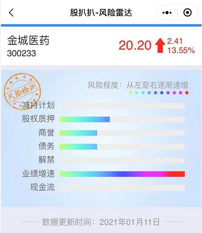 从股扒扒程序中,我们可以看到金城医药存在的一些风险。